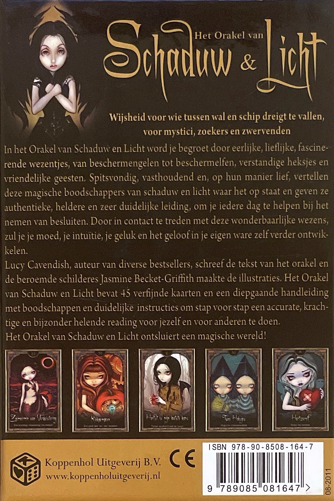 Lucy Cavendish, auteur van bestsellers, schreef de tekst van het orakel en de beroemde schilderes Jasmine Becket-Griffith maakte de illustraties. Het Orakel van Schaduw en Licht bevat 45 verfijnde kaarten en een diepgaande handleiding met boodschappen en duidelijke instructies om stap voor stap een accurate, krachtige en bijzonder helende reading voor jezelf en voor anderen te doen. Het Orakel van Schaduw en Licht ontsluiert een magische wereld!