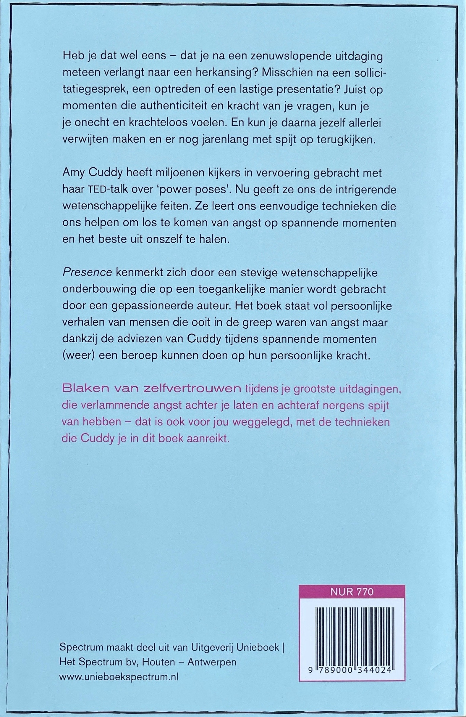 Presence kenmerkt zich door een stevige wetenschappelijke onderbouwing die op een toegankelijke manier wordt gebracht door een gepassioneerde auteur. Het boek staat vol persoonlijke verhalen van mensen die ooit in de greep waren van angst maar dankzij de adviezen van Cuddy tijdens spannende momenten (weer) een beroep kunnen doen op hun persoonlijke kracht.
