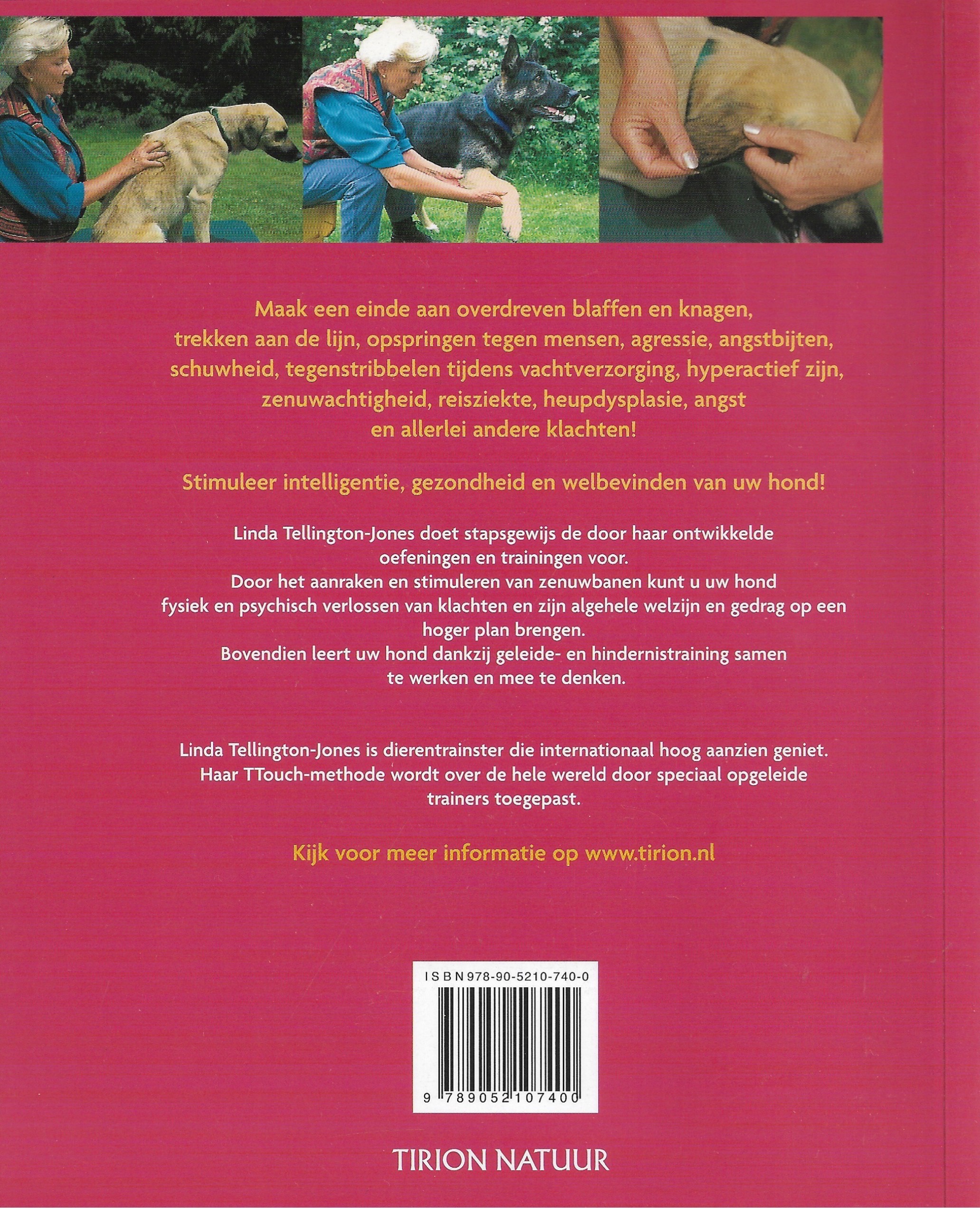 Linda Tellington-Jones doet stapsgewijs de door haar ontwikkelde oefeningen en trainingen voor. Door het aanraken en stimuleren van zenuwbanen kunt u uw hond fysiek en psychisch verlossen van klachten en zijn algehele welzijn en gedrag op een hoger plan brengen. Bovendien leert uw hond dankzij geleide- en hindernistraining samen te werken en mee te denken.